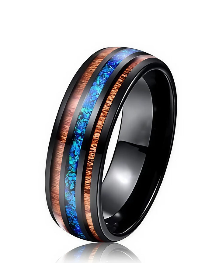 Nos bagues associent un cœur en tungstène à une incrustation de bois naturel. Ce mélange offre une bague stable, élégante et agréable à porter.