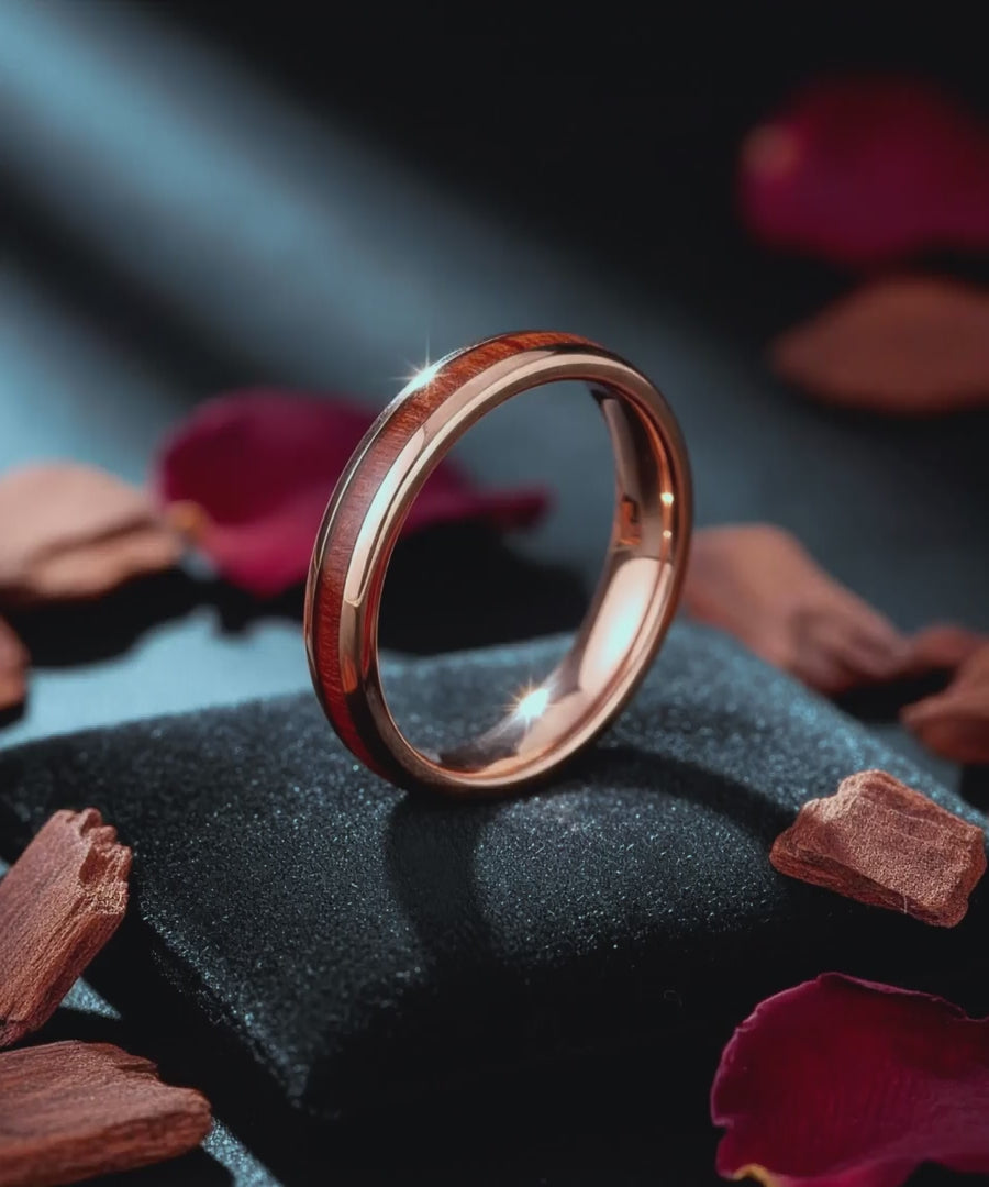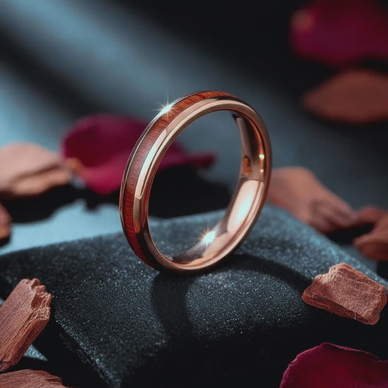 Réponses rapides pour bien choisir, offrir et entretenir votre bague en bois de koa et tungstène.